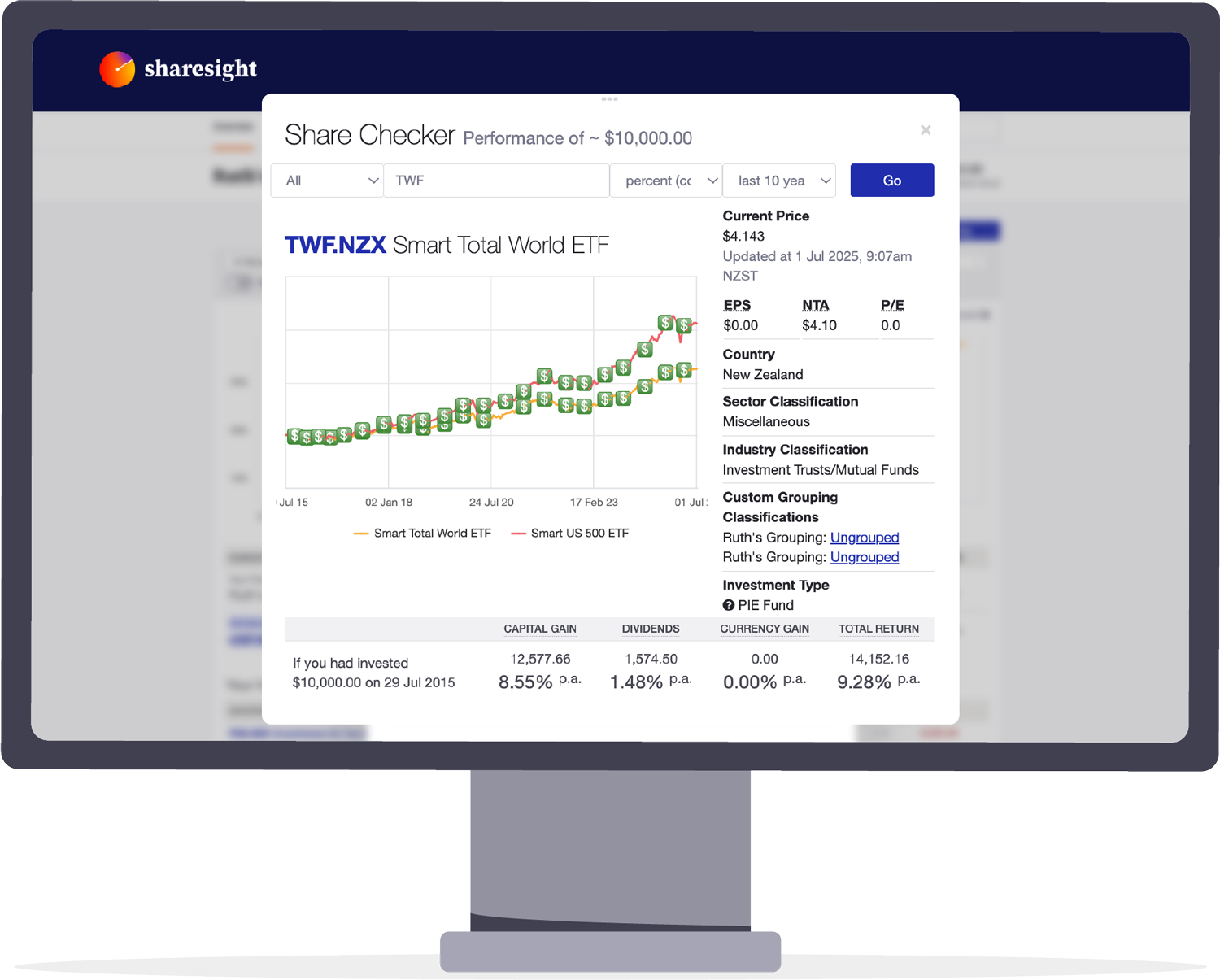 Using Sharesight’s Share Checker, $10,000 invested in the Smart Total World Fund in July 2015 would be worth $14,152 today.